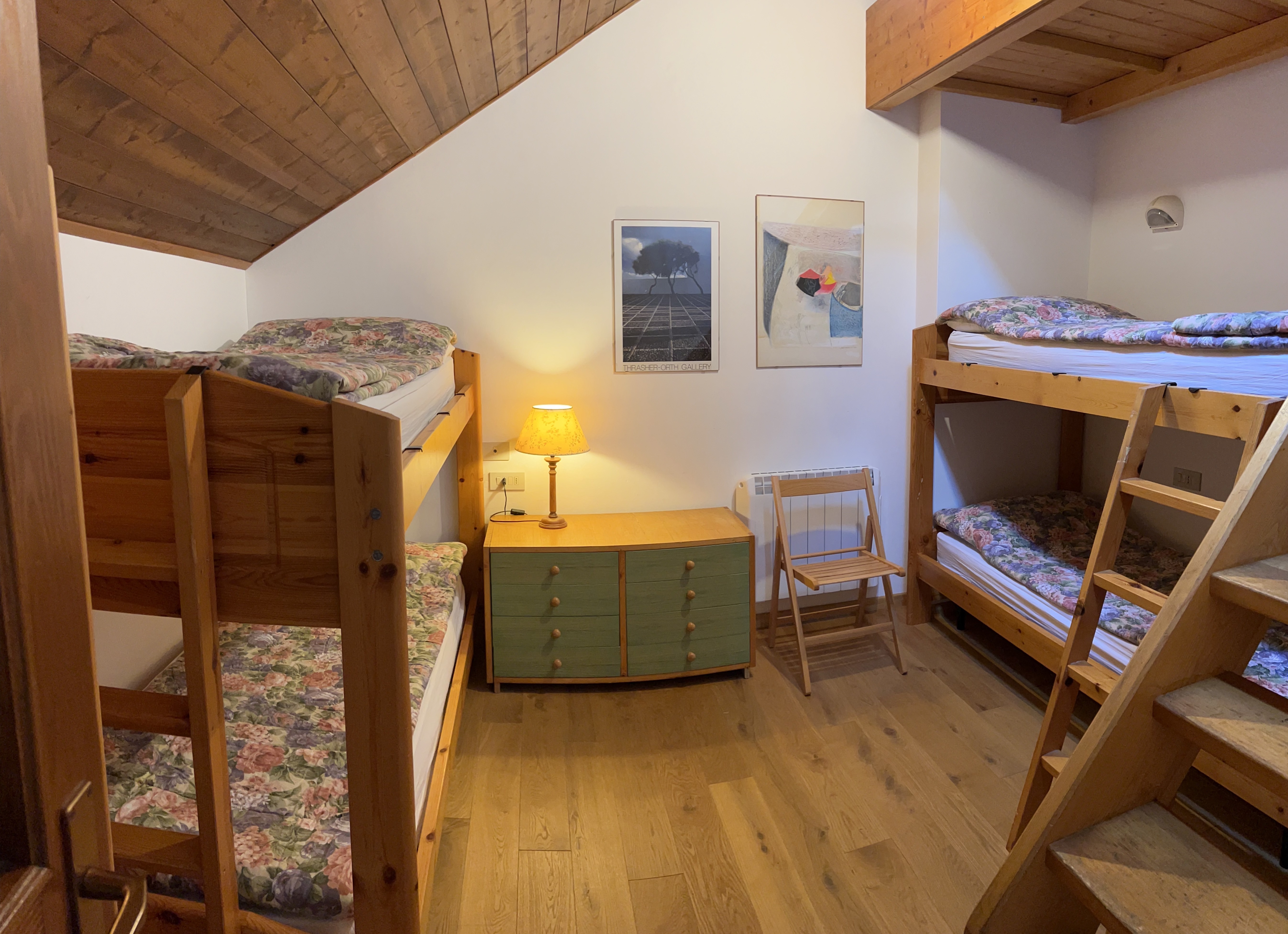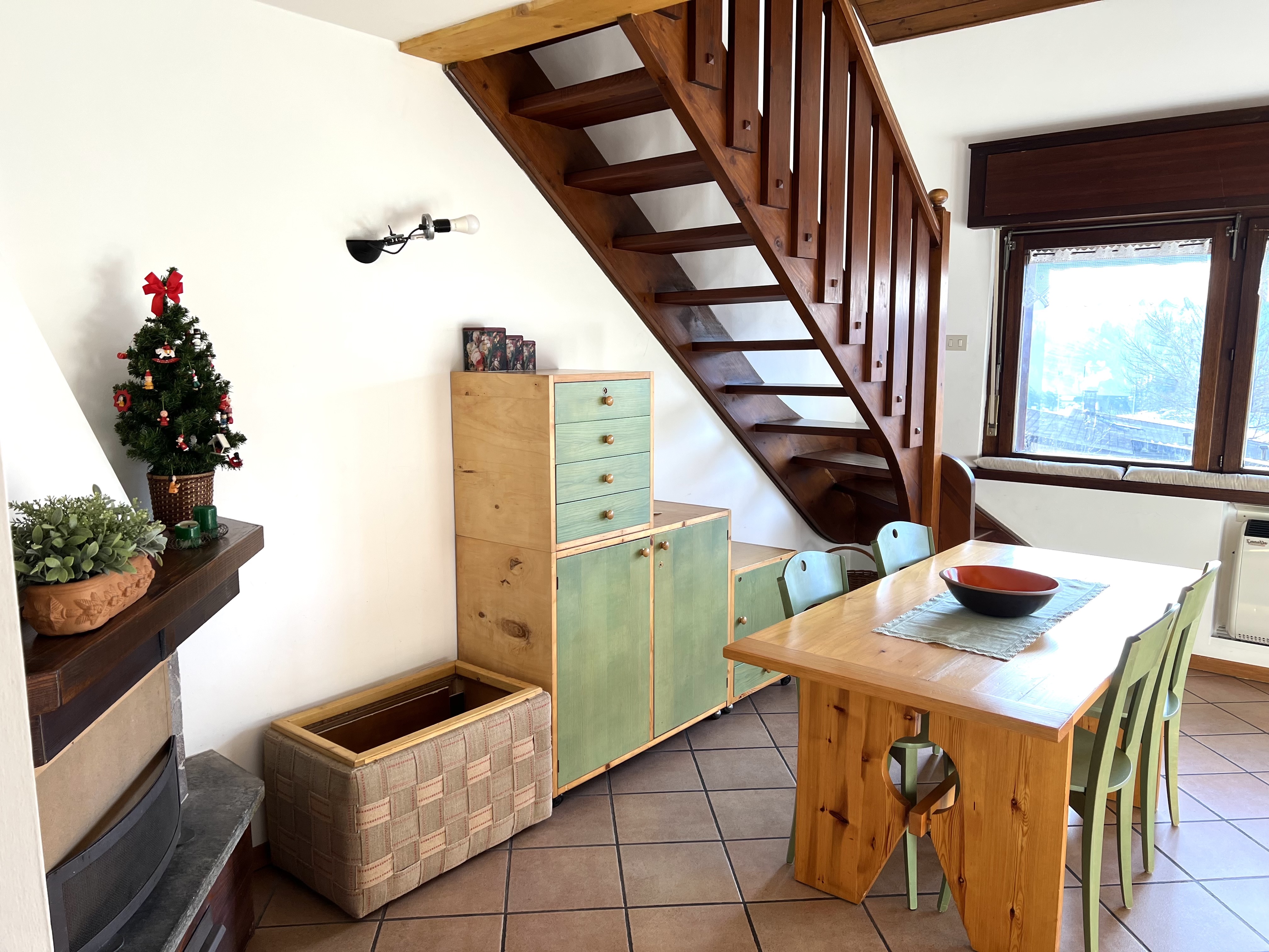 Appartamento trilocale parzialmente ristrutturato (6 posti letto), situato nella periferia di Cavalese in Via Bonora, disposto su due livelli e così strutturato: a terzo piano luminoso soggiorno-pranzo con angolo cottura e tipico caminetto, bagno di recente ristrutturazione. Una scala interna realizzata in legno conduce alla camera matrimoniale con bagno all'interno anch'esso di recente ristrutturazione, alla cameretta arredata con due letti a castello; a piano interrato posto auto coperto. Possibilità di usufruire dei posti auto esterni condominiali. Riscaldamento autonomo a radiatori elettrici, integrato con centralizzato a gasolio antigelo.