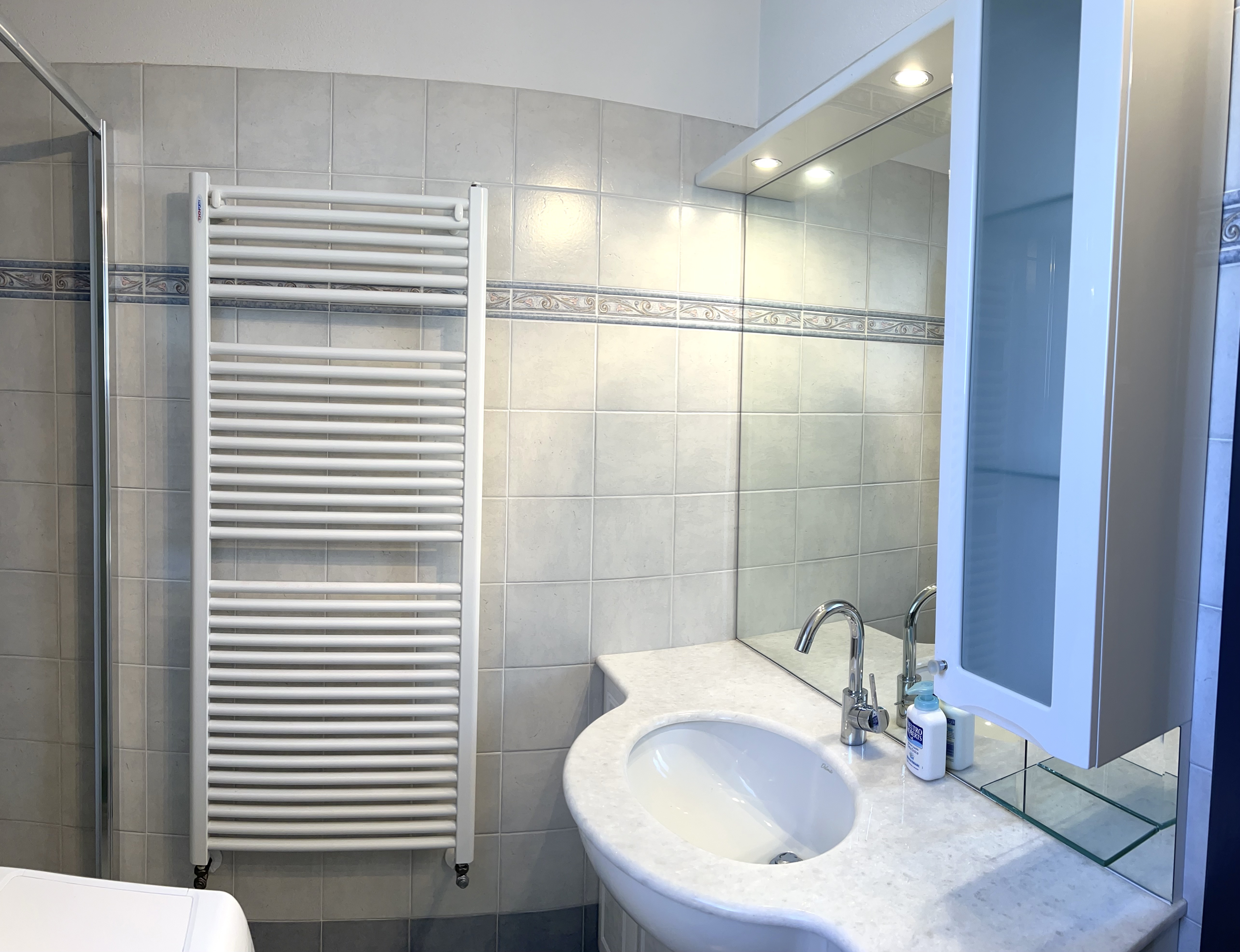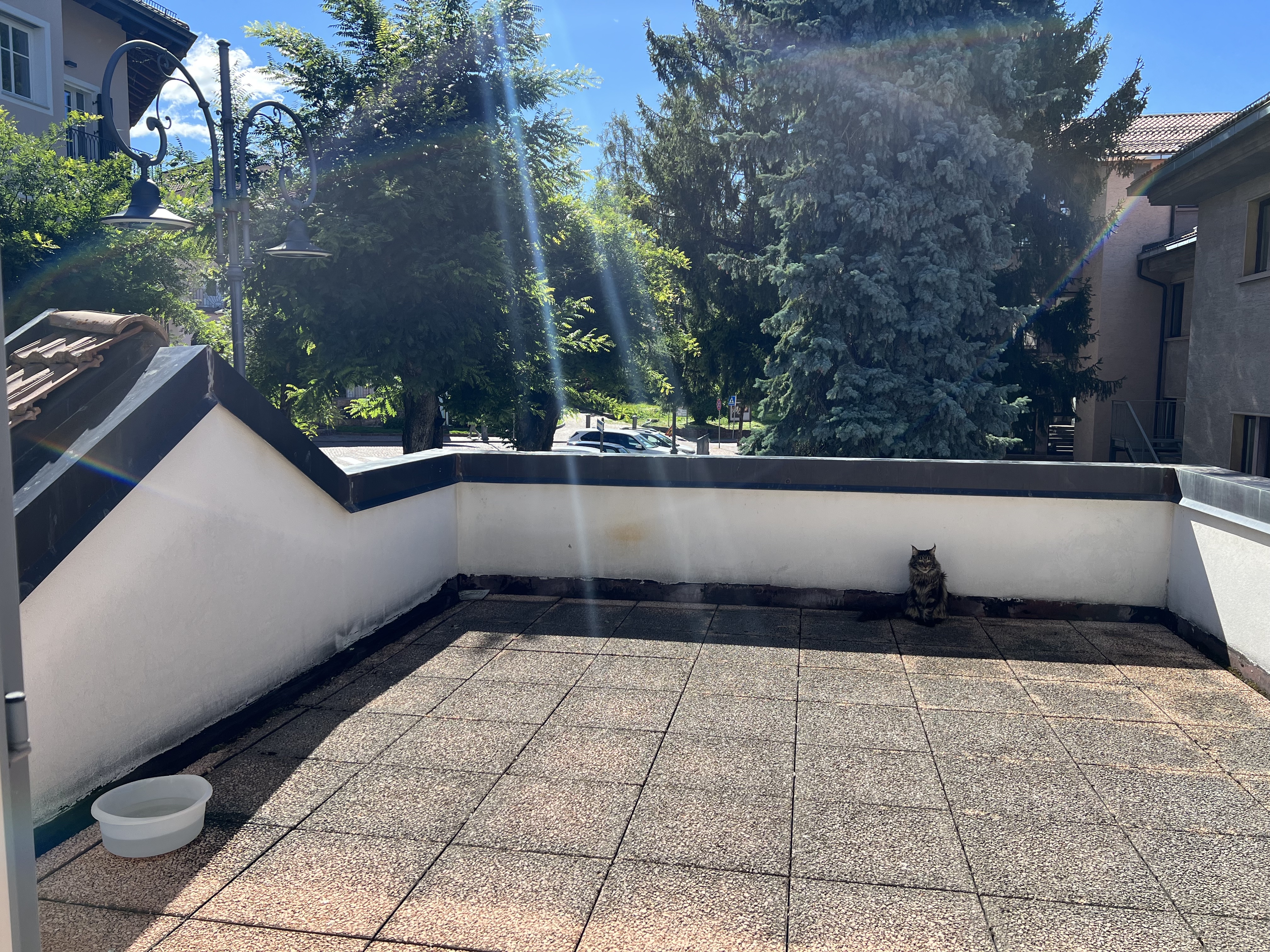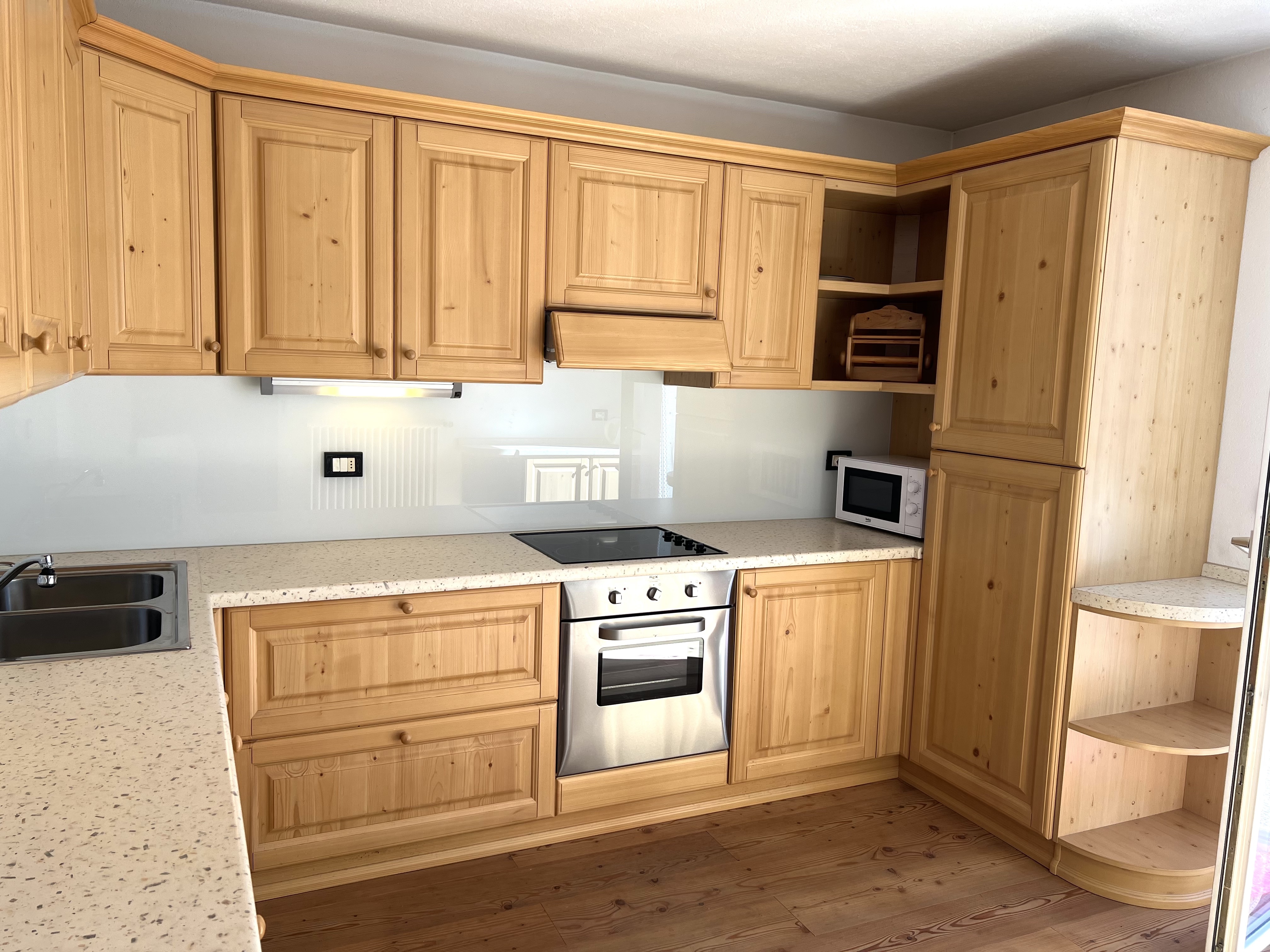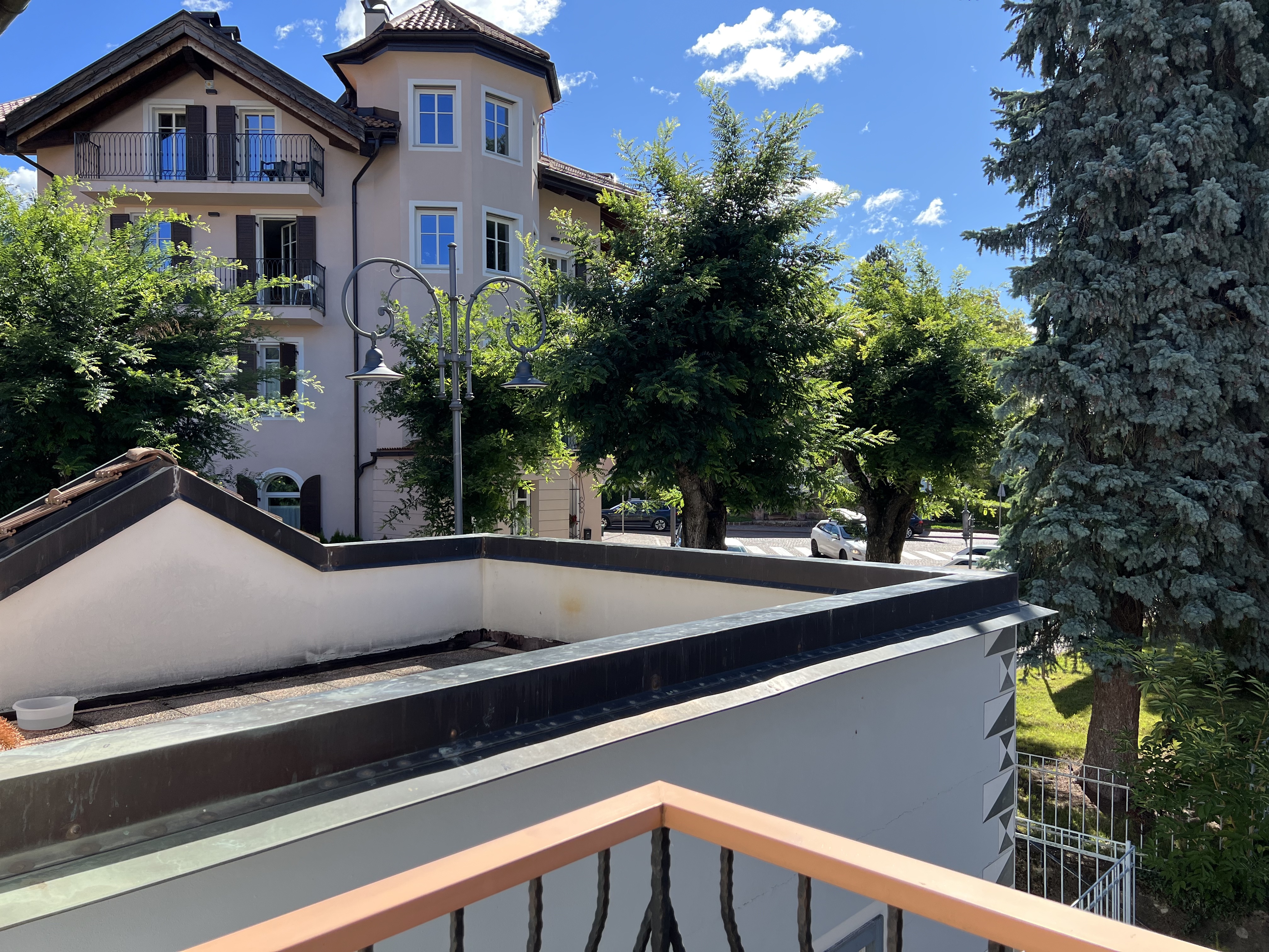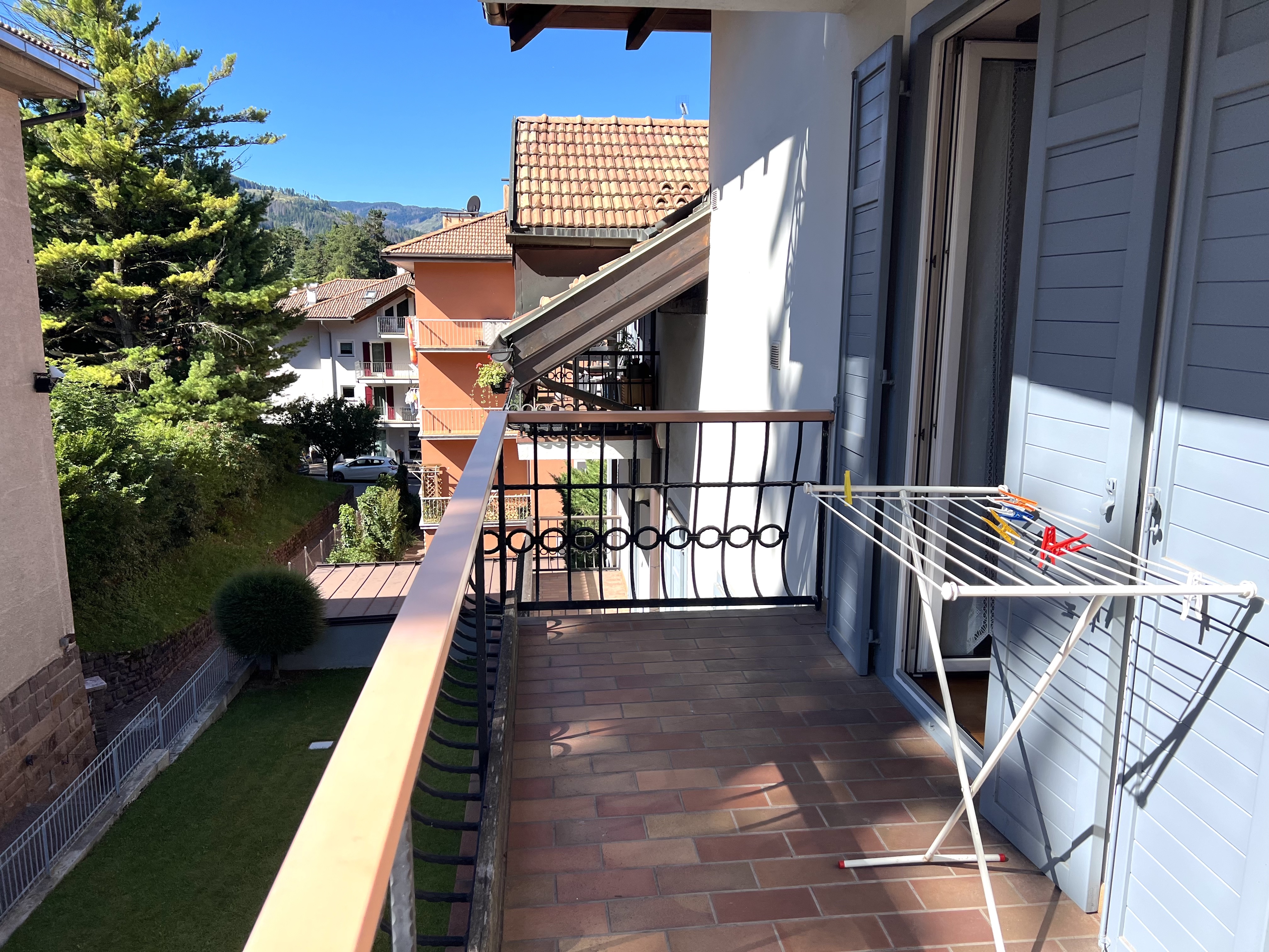 Splendido e luminoso appartamento quadrilocale in edificio ristrutturato in pieno centro con finiture di pregio, disposto a secondo piano e servito da ascensore condominiale, costituito da ingresso, soggiorno pranzo con tipica stufa a legna, spaziosa cucina, tre camere, doppi servizi finestrati, due balconi, ampio terrazzo di proprietà. Venduto con garage, cantina, locale caldaia e giardino comune. La residenza è servita dal teleriscaldamento.